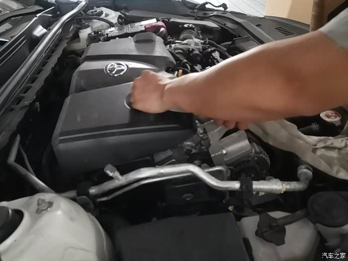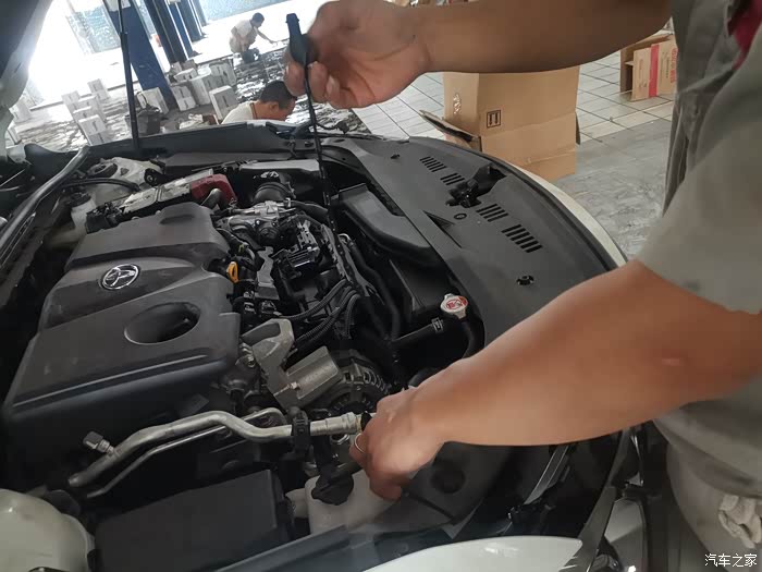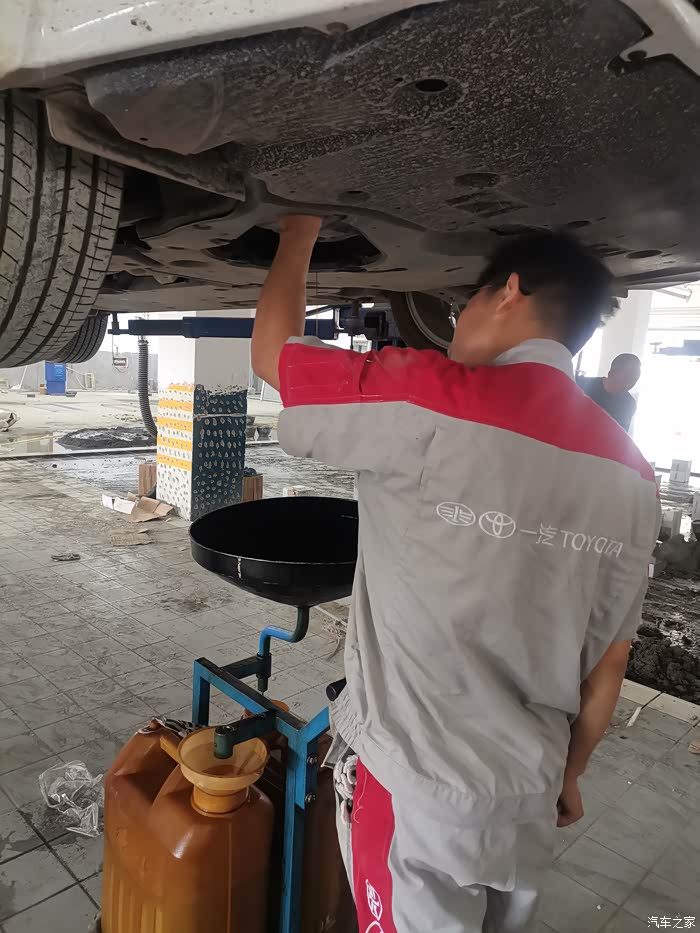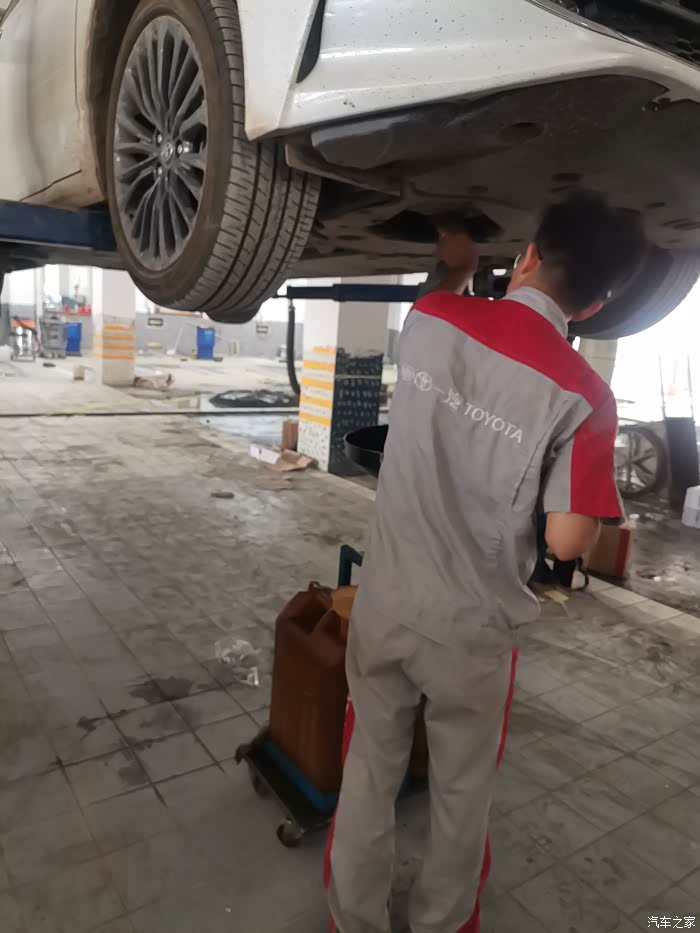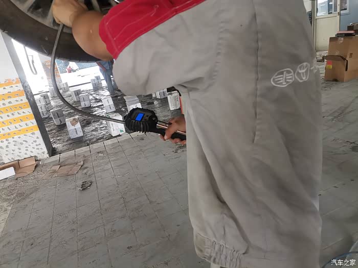 检查胎压,把胎压打到标准值,其实我们这边丰田4s的保养师傅的这个手法还是非常娴熟的,而且服务态度也很好。