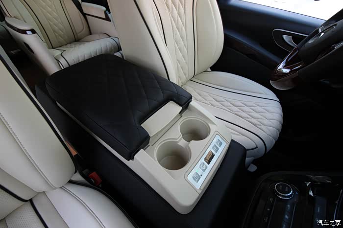手扶一体的车载冰箱前还配有杯槽设计。