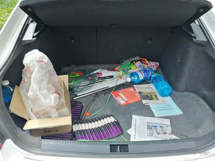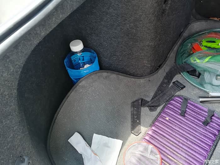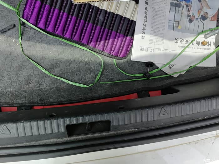 这是原来凌乱的后备箱,大小非常不合适的、4s送的后备箱垫