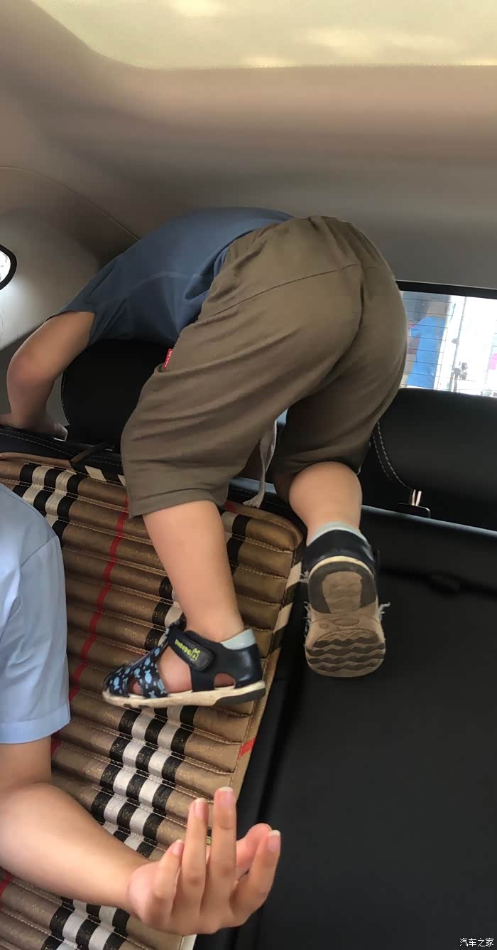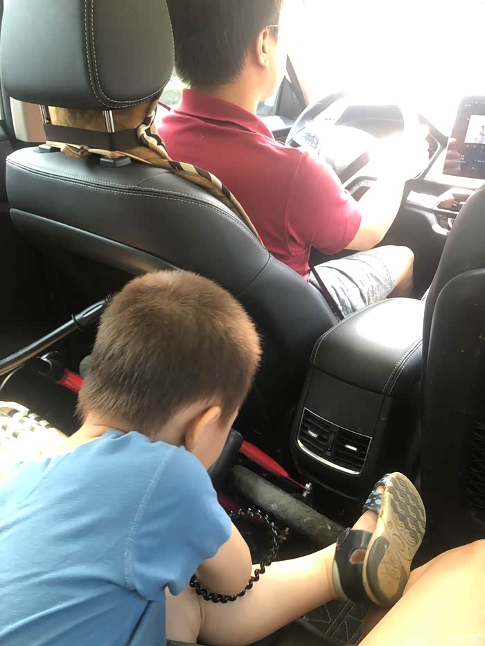 逛累啦!回家咯!这个不安生的小孩,借着我们车的空间大,这么任性呢!还好我们车没动呢!