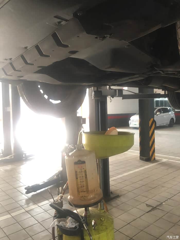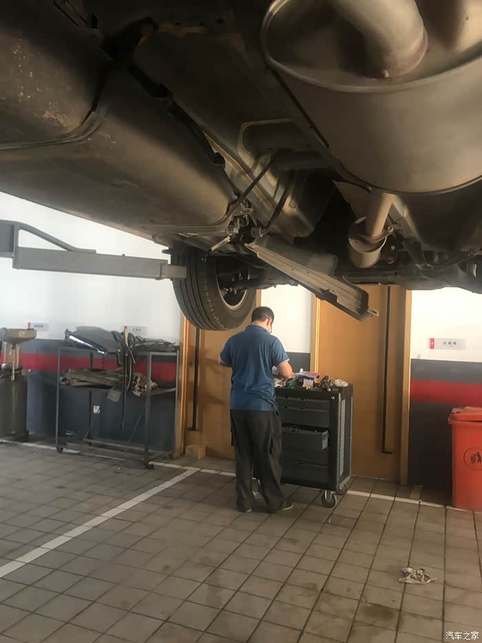 机油我还是选择380的那款,我一直认为车是自己开的,你对车子负责就是对自己负责的表现,感觉还是4s店的东西是比外面贵点,但最起码东西用的放心些。车子在正常好的保养下,也会让我们正常使用的时间加长吧!和服务接待在前台说了话,来车间就看到车子已经被升起来啦!