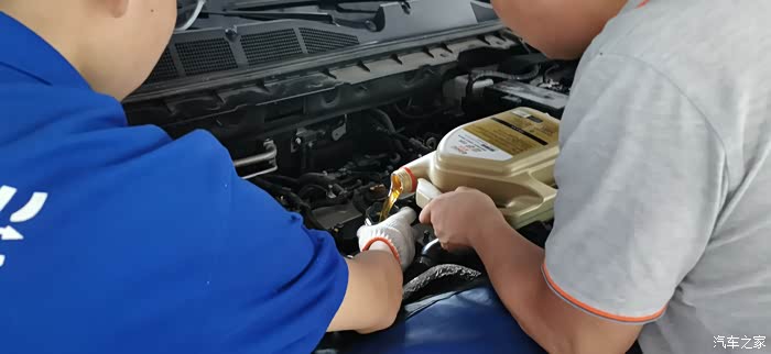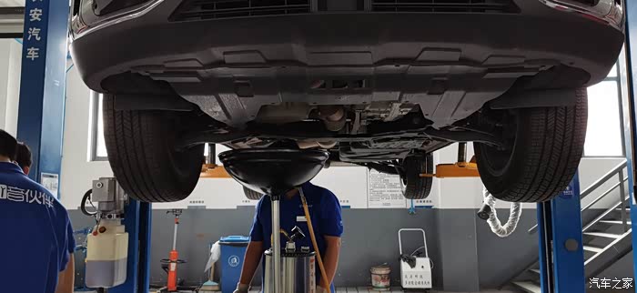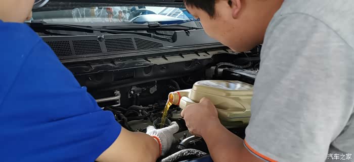 下一步放机油,店里用的重力放油,个人觉得机器换油换的更干净一些,也和他们的车间主任提了一个小小的改进意见