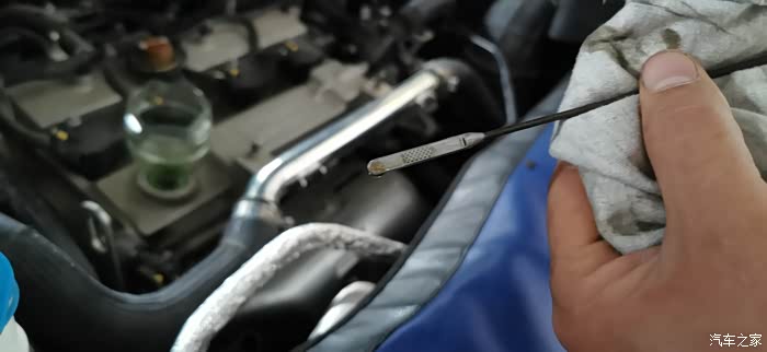 检测机油液位,可能是我拍照对焦对的慢了一些,其实液位还是相当的正好的