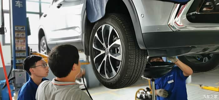 放油的间隙,技师检测胎压,入夏了,胎压过高影响驾驶安全