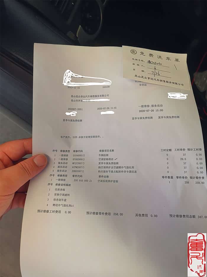 车子刚洗干净停一会就全是灰,刚好车子之前买保险时有送了一个空调法斯消毒杀菌,准备去店里再做下空调蒸发箱清洗及空调通风管路清洗。