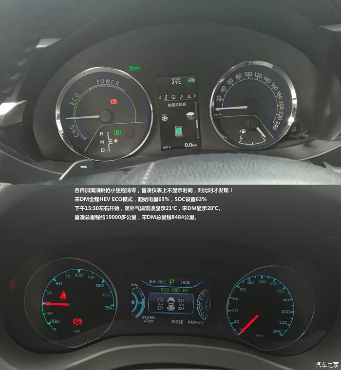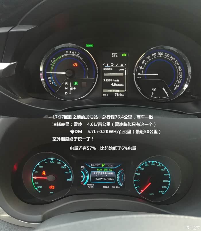 终于抽空用我的宋DM与同学的雷凌双擎作一个简单的对比。宋DM选择HEV ECO模式,这个模式与雷凌双擎工作模式相似,就让我们来看看2.12吨的全时四驱SUV与1.4吨的紧凑型轿车之间的油耗对比吧!