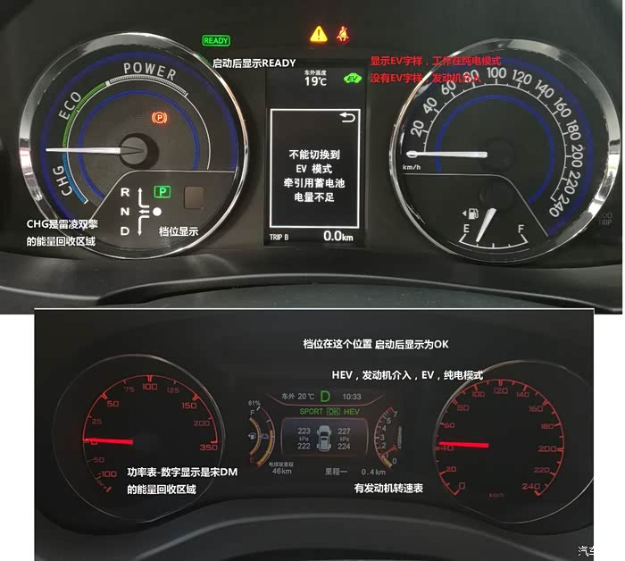 两车仪表显示功能简单对比,宋DM更直观一些。