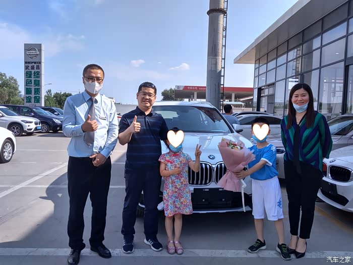 6月30日的提车合影留念,4S点销售送了一束鲜花,我们一家子和销售。