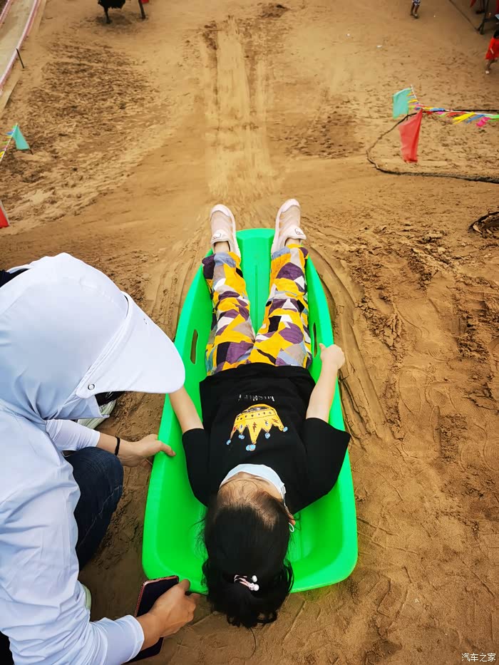 闺女第一次滑沙,好勇敢,加油