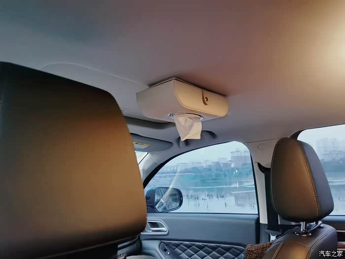 车顶纸巾盒,一点不浪费空间。车上还有救援队活动带回来的矿泉水瓶。