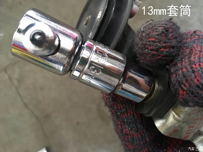 原装垫片衔接到网购喇叭上,用13mm套筒拧紧。