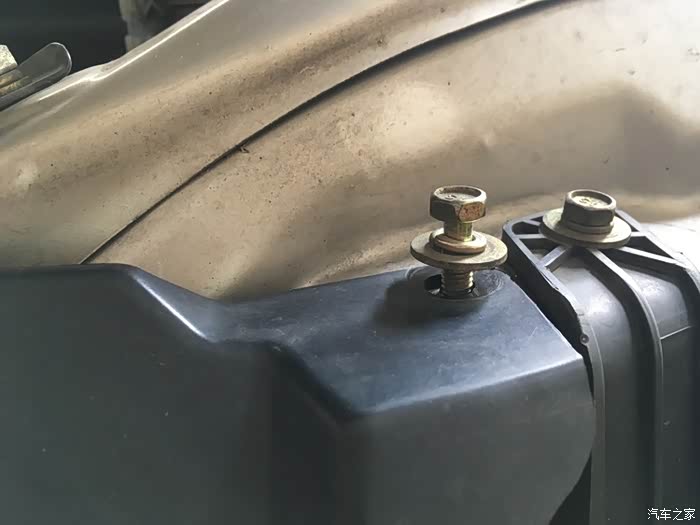 这里只要拆上面这个螺丝即可10mm套筒,下面的螺丝卡住了不好拧。所以先拆上面小的这个螺丝。