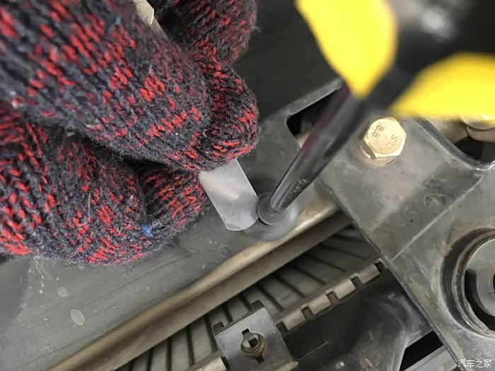 装回的过程很多老司机都忽律不说的,我是87年9月2号新司机,所以我觉得应该啰嗦一下,格栅卡进去(向里推)之后,先上好两个六角螺丝,不要拧死,不要拧死,不要拧死,看下图