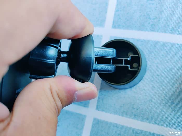 依旧是球形的旋转方式,虽然传统,但却是那样的实用。与之搭配的另一个配件就是下面图片的车内粘贴固定部件,使用同样简单,只需将安装好后的球形的旋转机构,咬紧住粘贴部件内部即可,安装拆卸便捷就是它所达到的结果