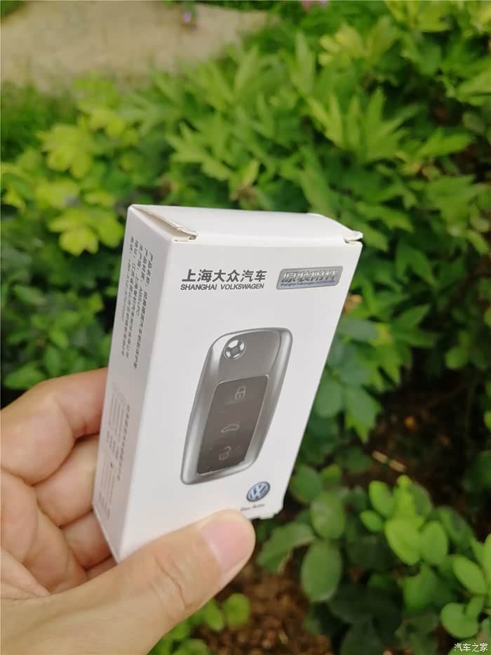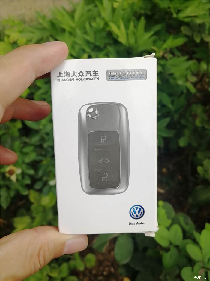 今天废话有点多了,还是赶紧看看今天的主角吧!拿出钥匙保护壳盒子,看到正面上面的logo还是上海大众汽车,应该是之前生产的东西了,看来这种硬质钥匙保护壳不好卖啊。logo旁边是原装附件字样。