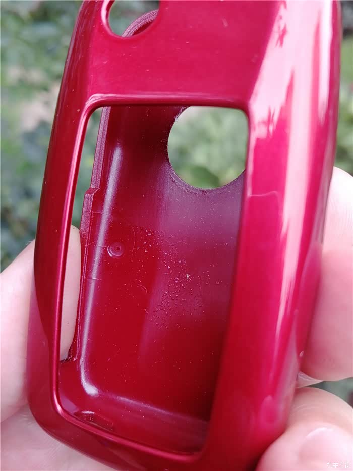 背面是透明的,可以看到红色的汽车钥匙保护壳静静地躺在里面。
