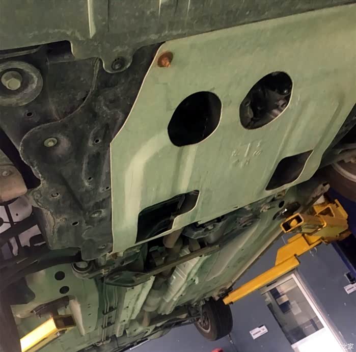 前机盖打开铺专用垫看规范修理铺样,然后举升机放准位置后顶起来