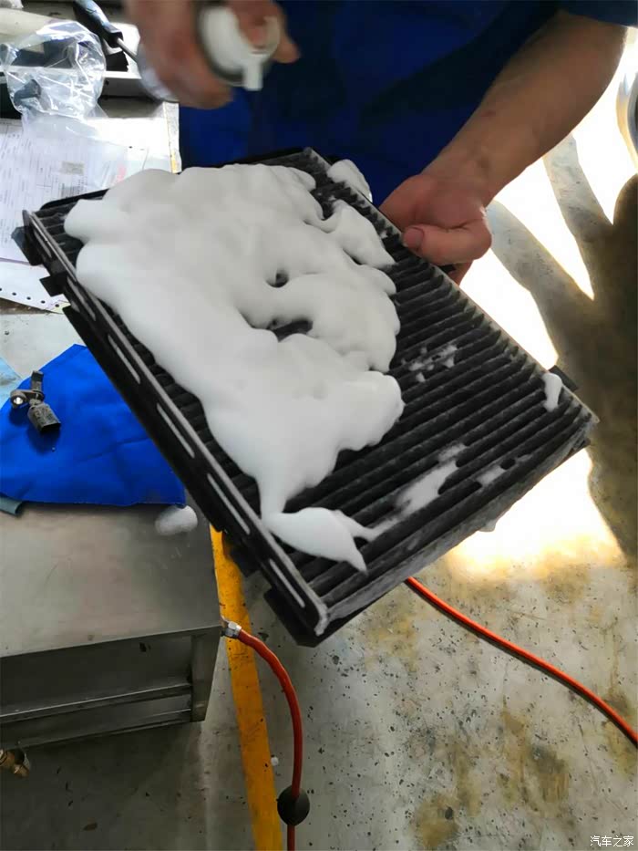 空调滤芯清理完后,用蒸发器清洗剂喷一层泡沫,再用除味剂喷一喷,估计是担心空气滤芯上有异味,其实我觉得如果有异味的话,换掉是不是更好?