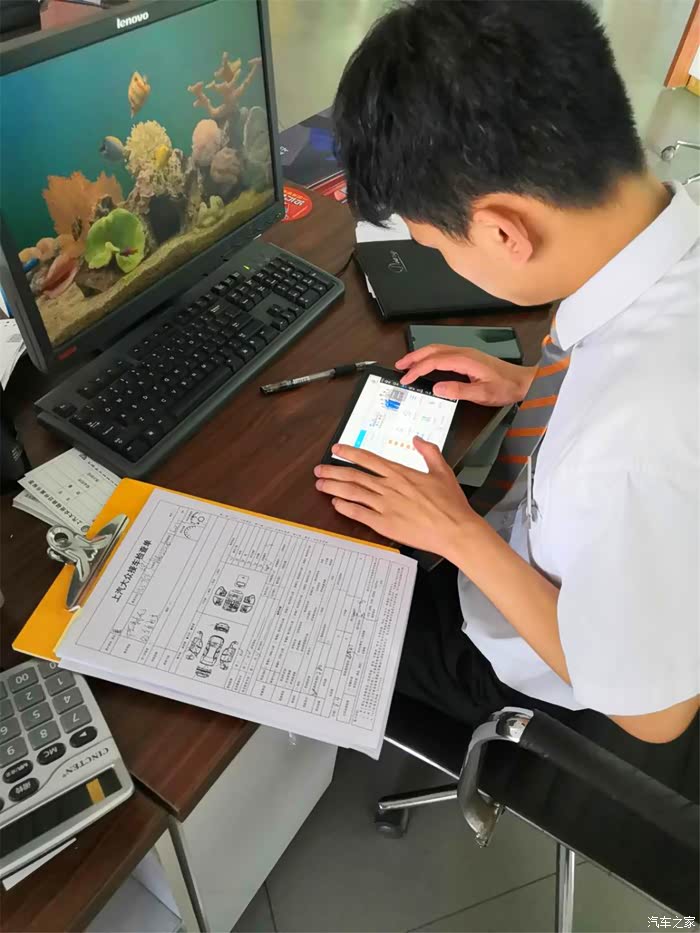 开好维修单地老朗,静待接车师傅把它开进维修车间。