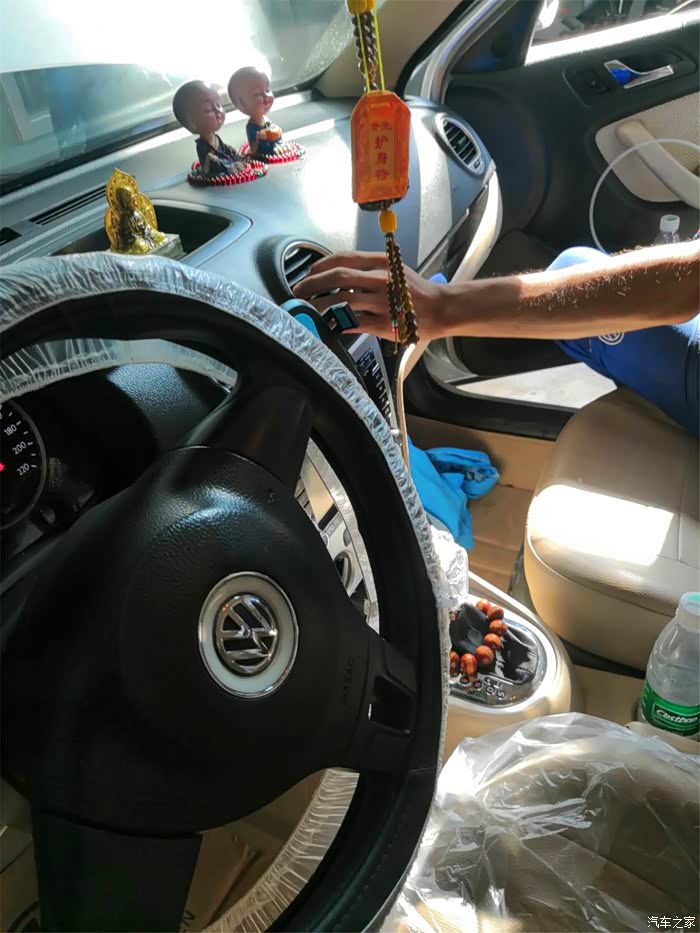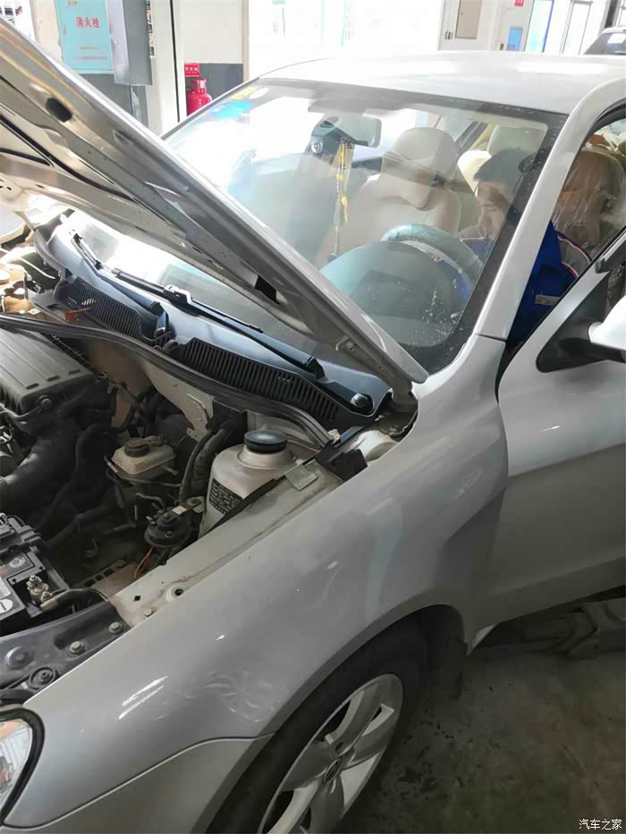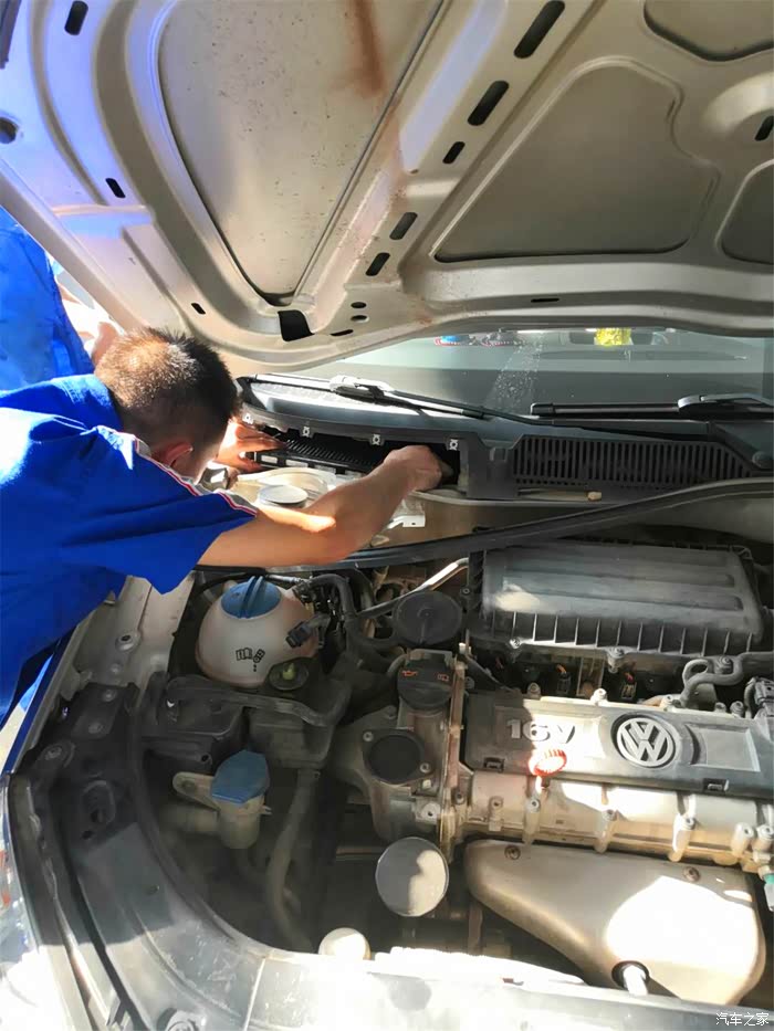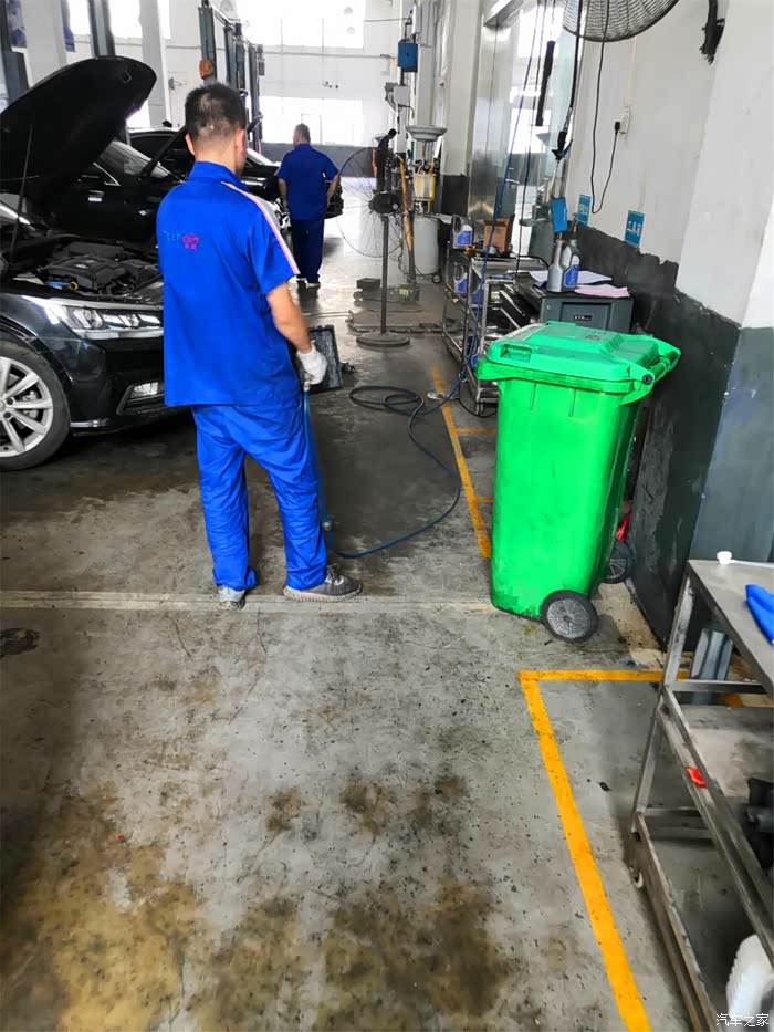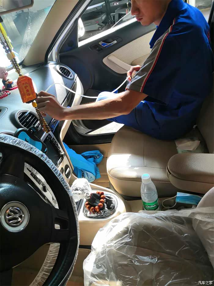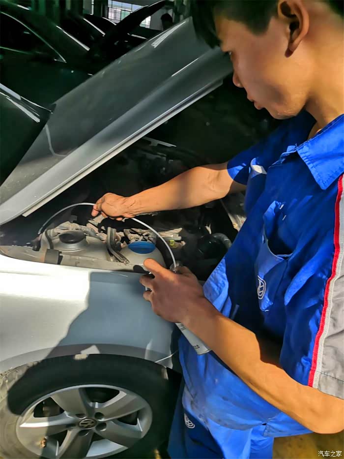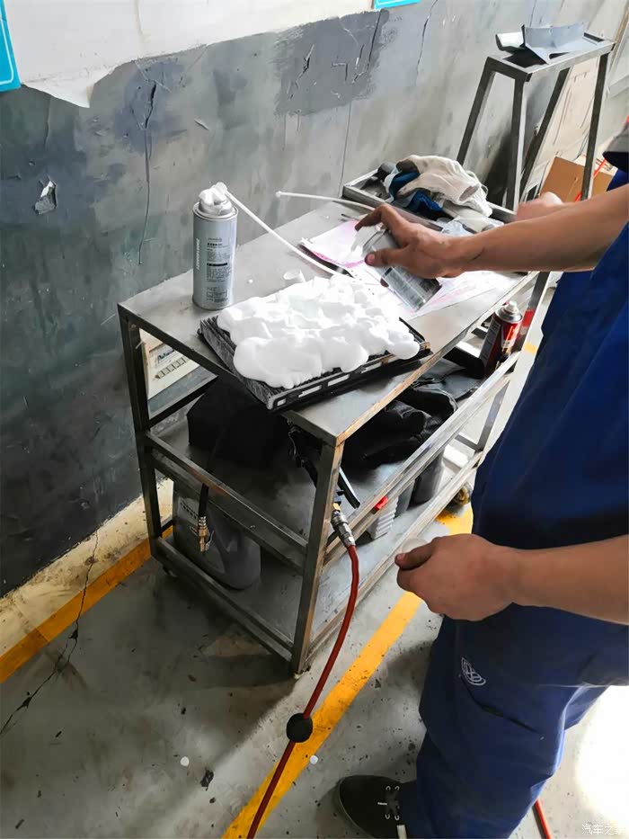 喷完一半,维修师傅开始发动汽车,把空调打开,调到最高档