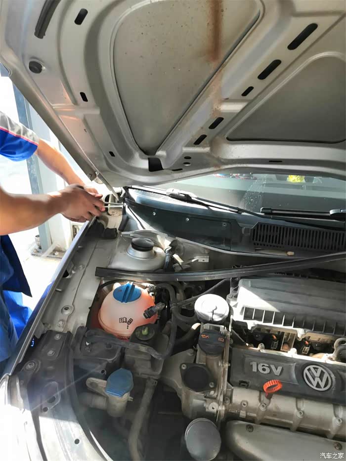 打开引擎盖,准备开始清洗。