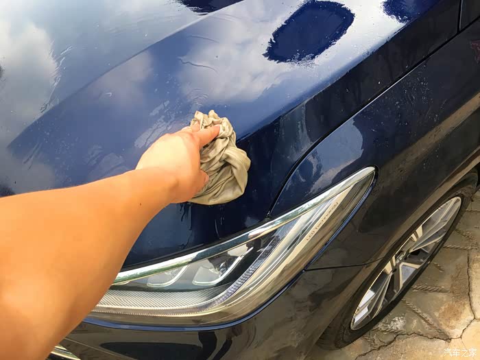 冲洗完,再用洗车液擦拭,然后用毛巾擦干