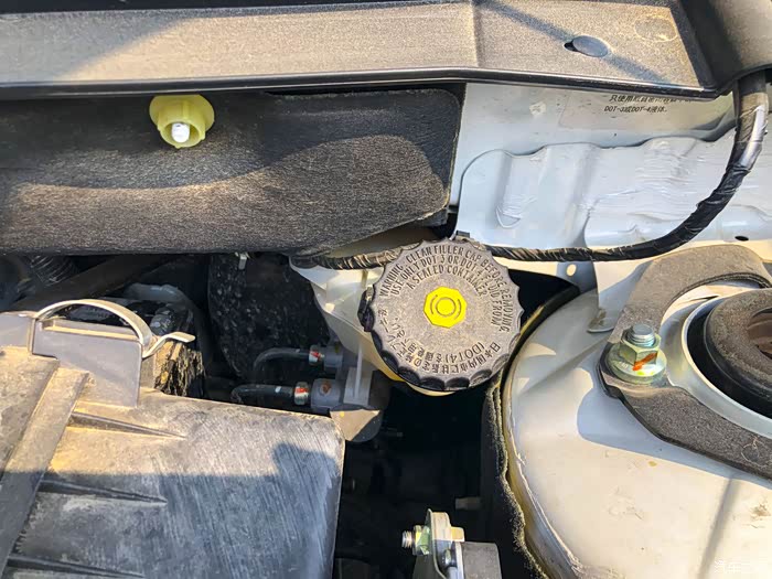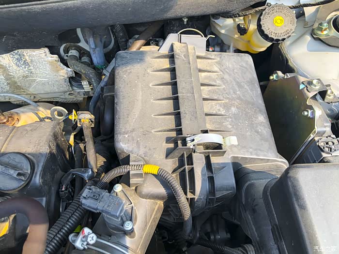 打开发动机舱,有点脏,这也是行驶过程的印记,如果买二手车碰到这里很干净,那么大概率还是有问题的。