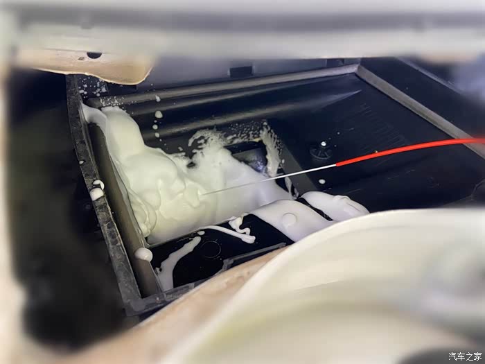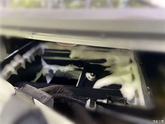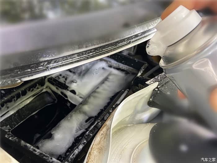 使用空调蒸发箱清洗剂(400ml)向内部喷入泡沫。
