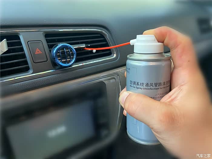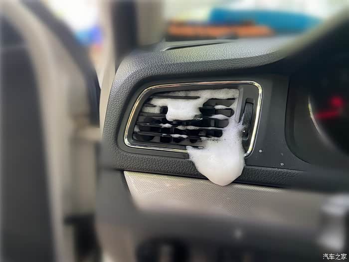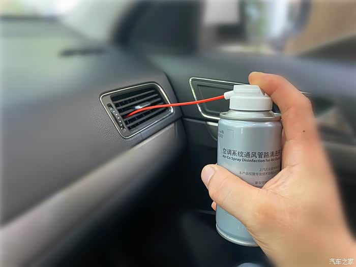 对着中控台的所有出风口喷入清洗剂。