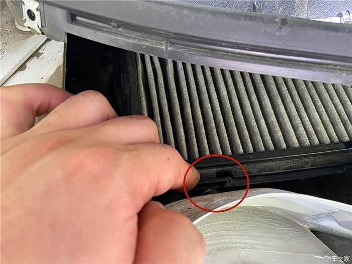 其次扳动卡扣取出空调滤芯。