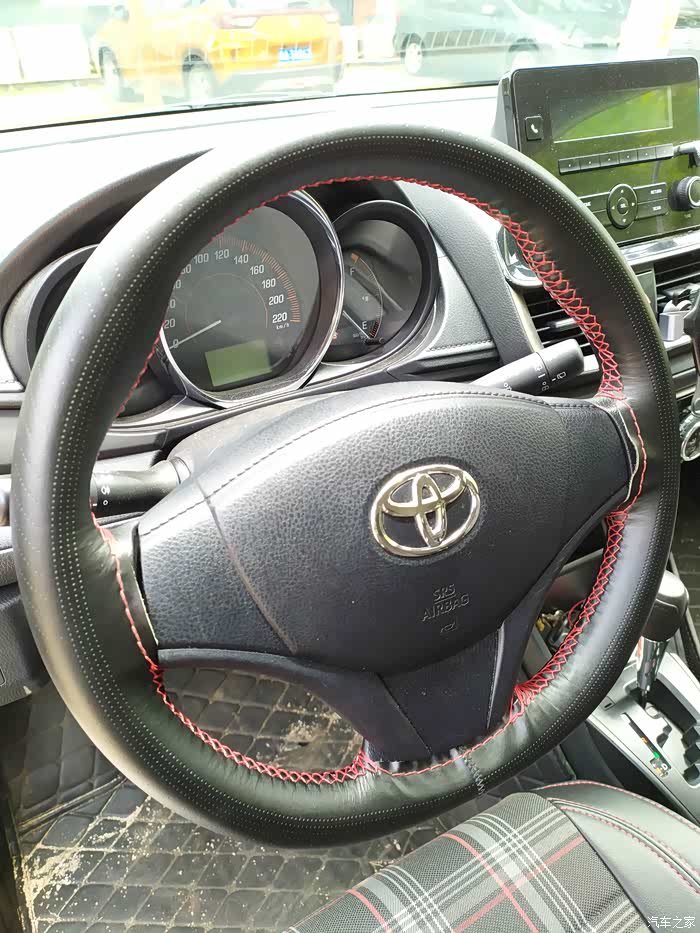 方向盘套,拼多多买的垃圾货,自己缝的,味道刺鼻,很久才消掉,还好装的时候天气凉快,都是开窗开车,就懒得扯掉。