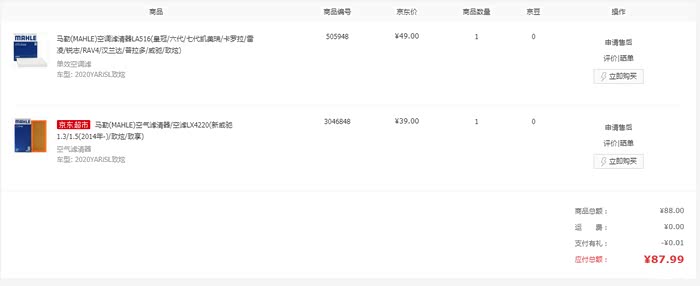 一个空气滤芯,一个空调滤芯,认清型号不要买错了。