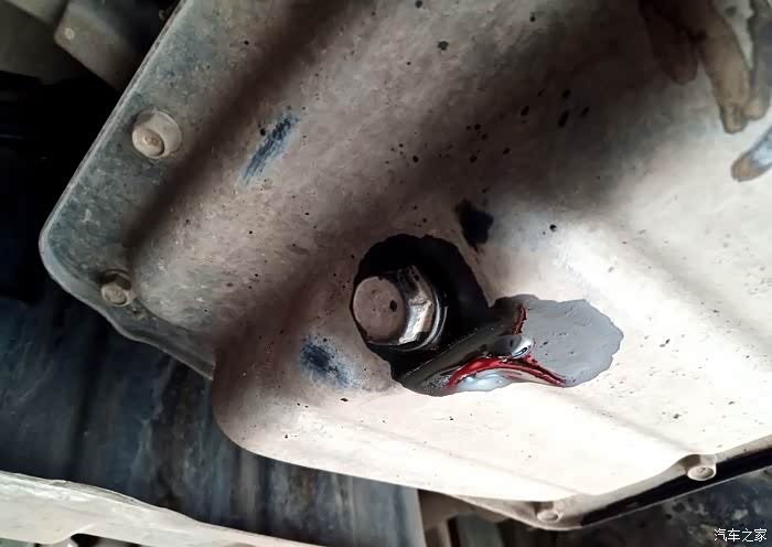 拧掉油底壳螺丝的一刹那,棕黑色的机油直泻而下。