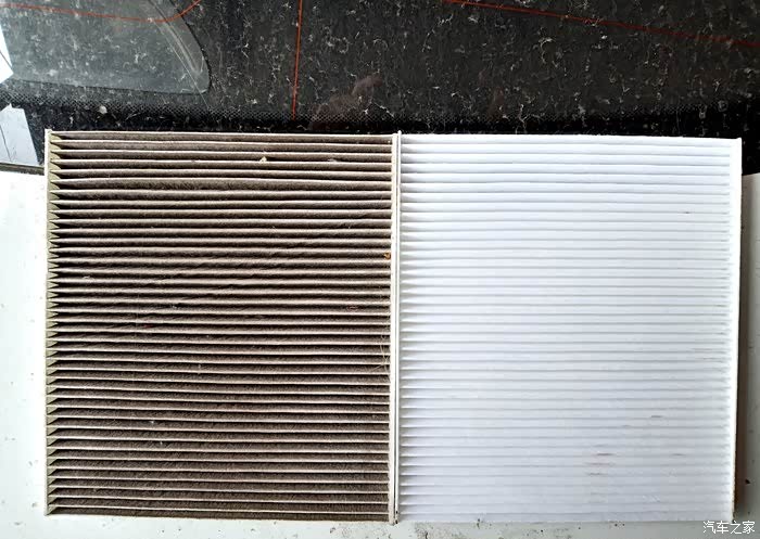 依旧可以说,没有比较,就不知道差距,这是新旧空调滤芯的对比图。