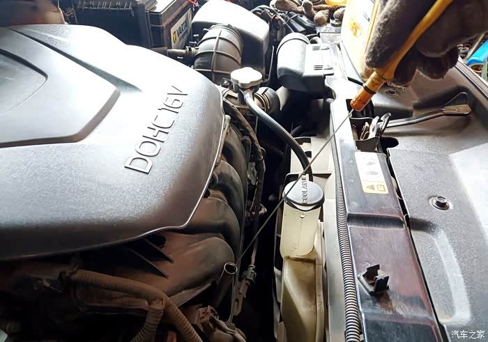 果然是欠那么一口,这个标准,我是指油标尺上限的位置,正常在中间位置稍靠上就可以,又不是大众系列,不会缺油,不需要中期添加的。