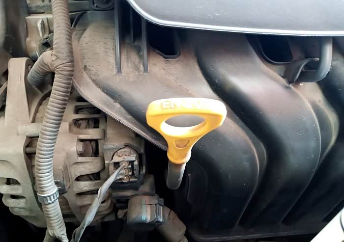 可以检查油标尺的油位了。