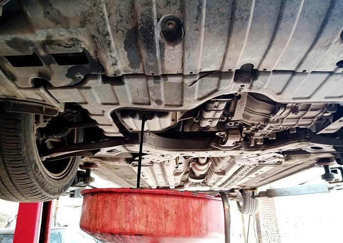车辆直接进入提升架位置,朋友直接开始例行保养程序作业。