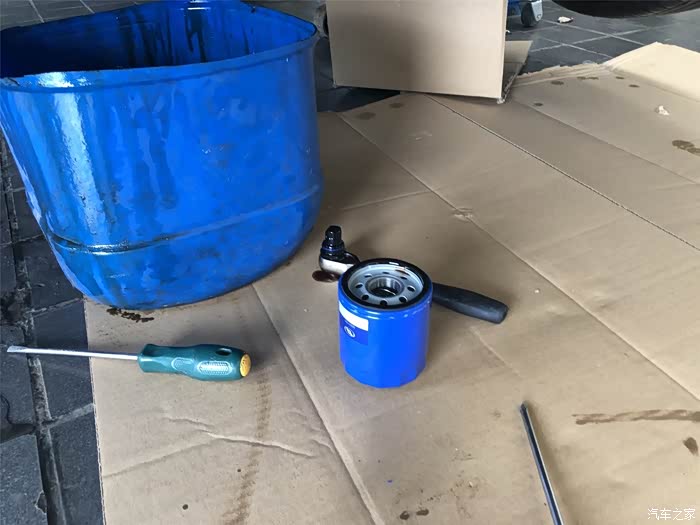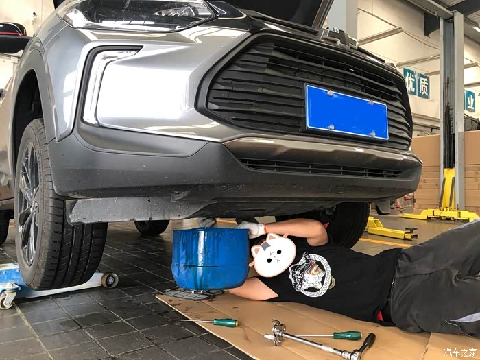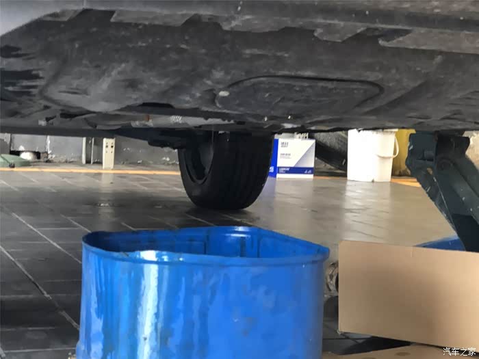 放机油换机滤,停电没法用升降机,只能躺在地上保养了,辛苦师傅了,不过师傅比较害羞不愿意露脸