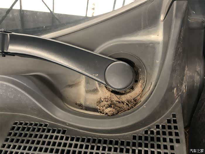 拍照的时候无意中发现雨刮器底部的渗水口都被泥巴堵死了