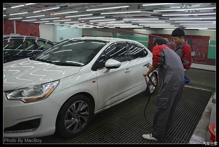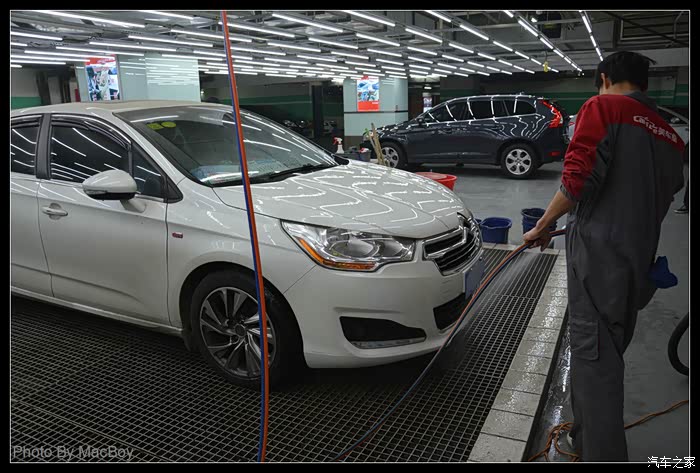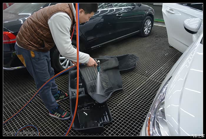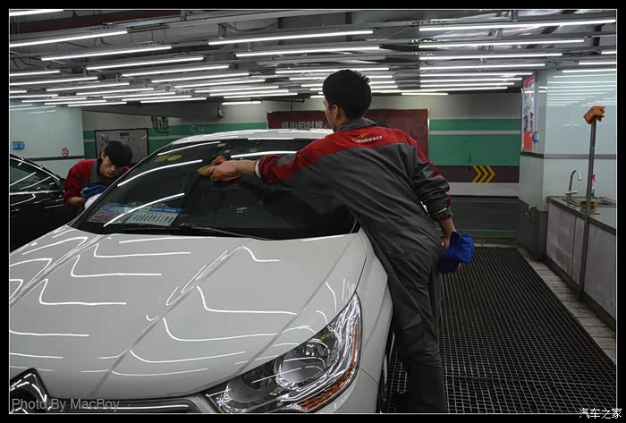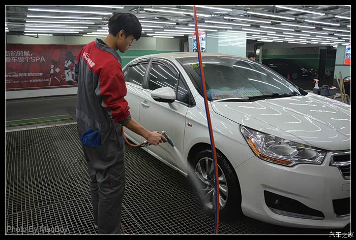 和帅哥店长进行简单的交流后就开始洗车了