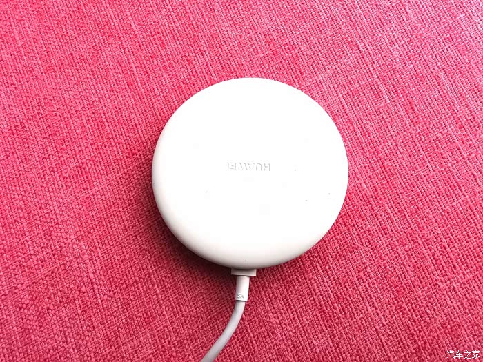华为无线充电器的形状是扁圆形状,类似于水杯盖大小,厚度大概2CM,从平面向下弧度延伸至底部,底部有硅胶防滑圈,电源线连接口凹陷设计很合理,充电工作指示灯为白色指示灯(不闪烁),机器整体颜色以白色为主色调,外圈有红色外边镶嵌,增加辨识度,起到画龙点睛的作用。电源线就是普通的5A电源USB数据线,在必要时可以直接插入手机充电孔直接充电。
