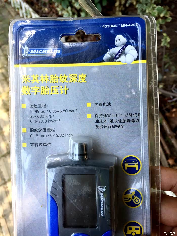 胎压计介绍,14年买的,已经换过一次电池了,也是2032,和车钥匙一样的电池。注意看文字介绍,合适的胎压可以节油,这可是大公司说的。