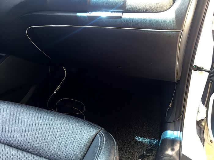 这已经把驱动器放在脚垫下了,多余的线我也不准备剪断了。因为说驱动器功率一定,带的灯条过长或者过短都不好。
