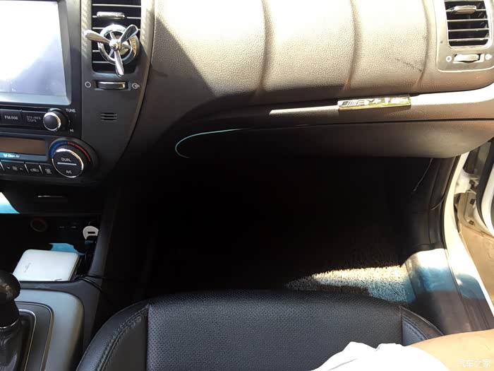 走线已经走好,充电宝放在储物盒里,方便我开关灯条。这样的话不占用车子的电源,也能达到节油的母的吧。主要是驱动器是个220V逆变器,我怕把车子电瓶给搞坏了。灯条没有塞好,等会我固定一下。