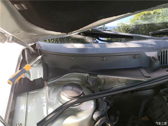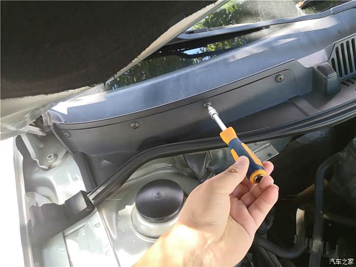 4个螺丝,一一松开,注意不要掉落到发动机舱。