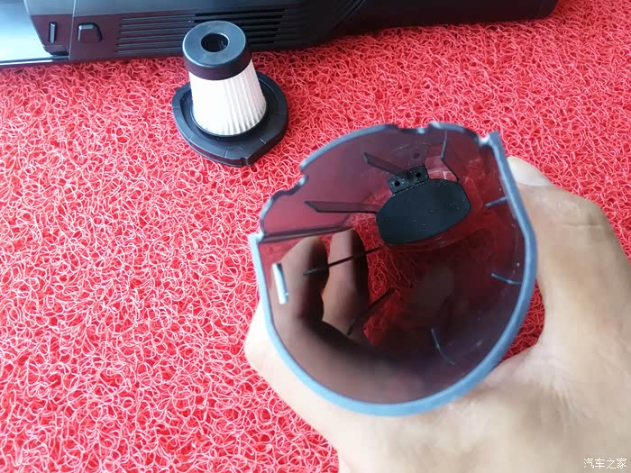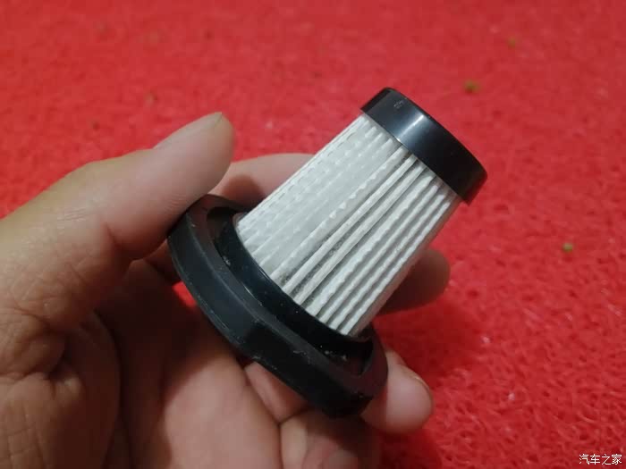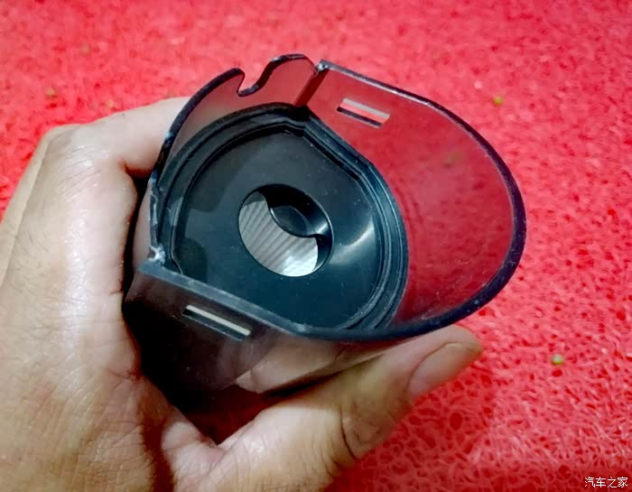 滤芯并没有设计卡扣之类的东西,紧紧利用了储物仓的造型和机身连接的压力进行固定,看到滤芯中间的小凸起了吗?这是方便拆卸滤芯的,细节满分。