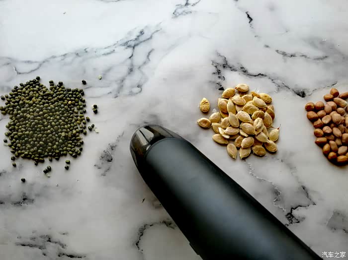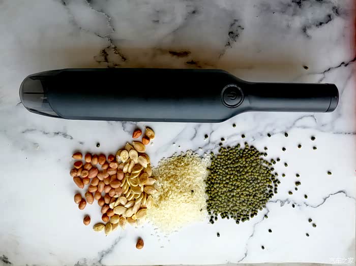 室内环境模仿的就是大家经常能看到而且比较头疼的谷物来测试的。我能找到的东西并不太多:大米(@韦大米)、绿豆、南瓜子、花生米,本来还准备了红枣,可是很尴尬的发现红枣比吸尘器的进污口还大,所以果断放弃。