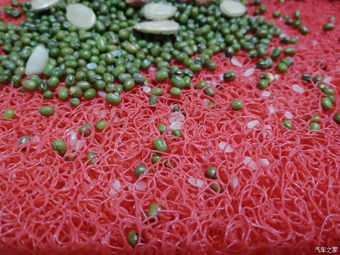清洁完成,可以看见丝圈的缝隙里还有很多残余的大米和绿豆。