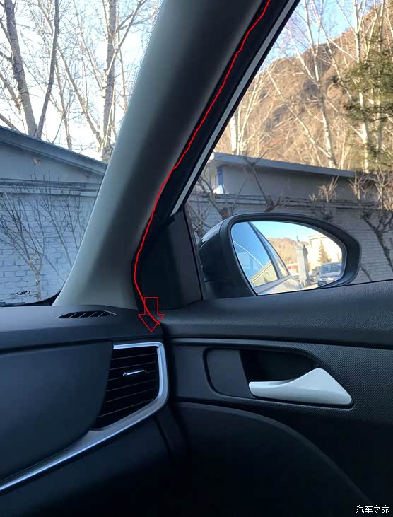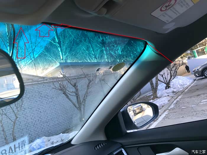 从后视镜开始走前挡风玻璃上方的缝隙,往副驾驶A柱延伸