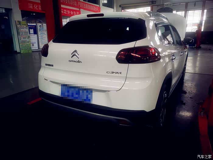 基本上是第一个冲进4S店的,早点搞早点结束了好赶路。一进店,接车员就把车倒入顶位,直接把车顶起来,来了个全车底盘的检查,顺手还紧固了底盘下所以的螺丝。检查很多,五分钱不到的样子,一切OK!